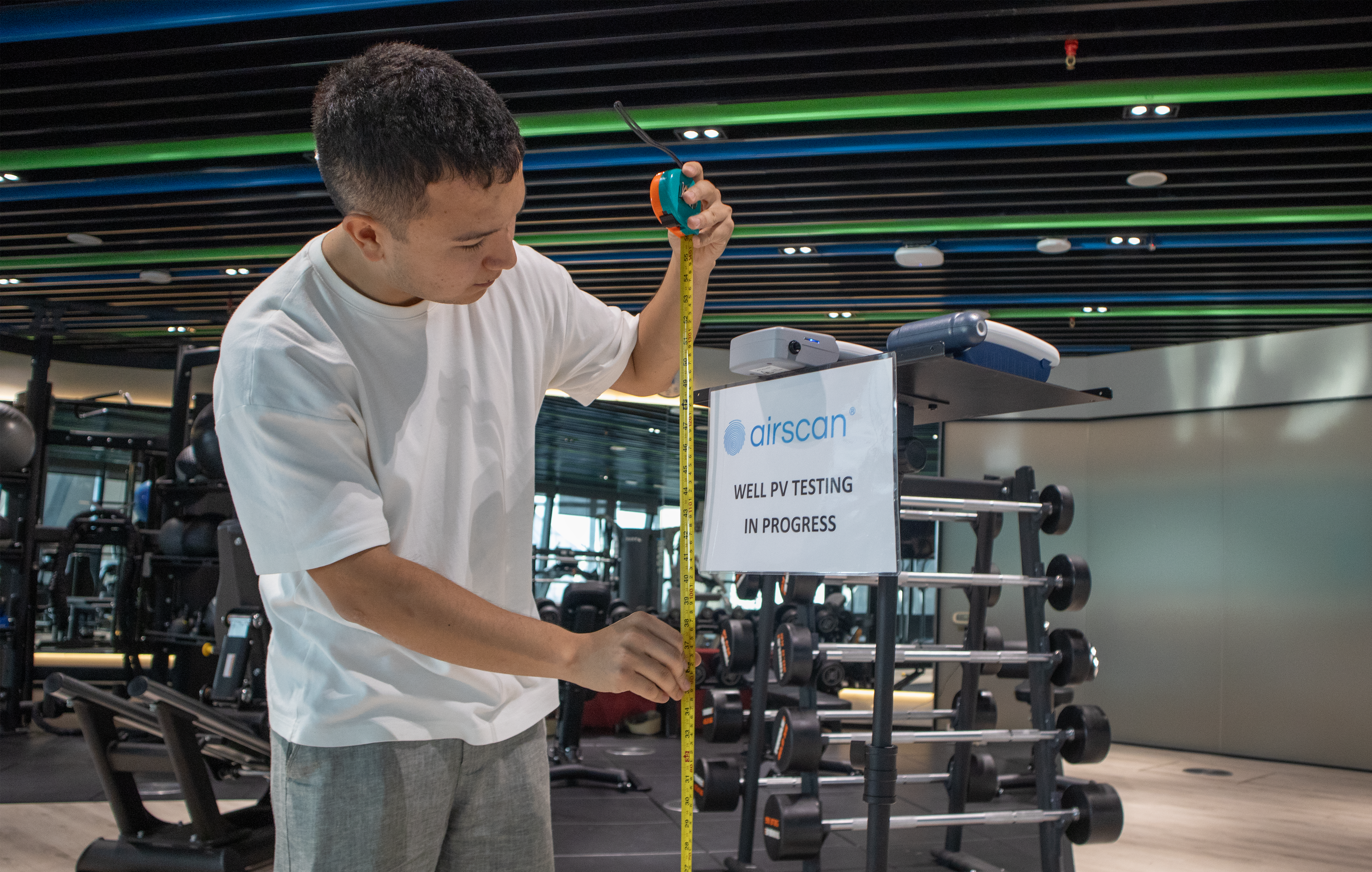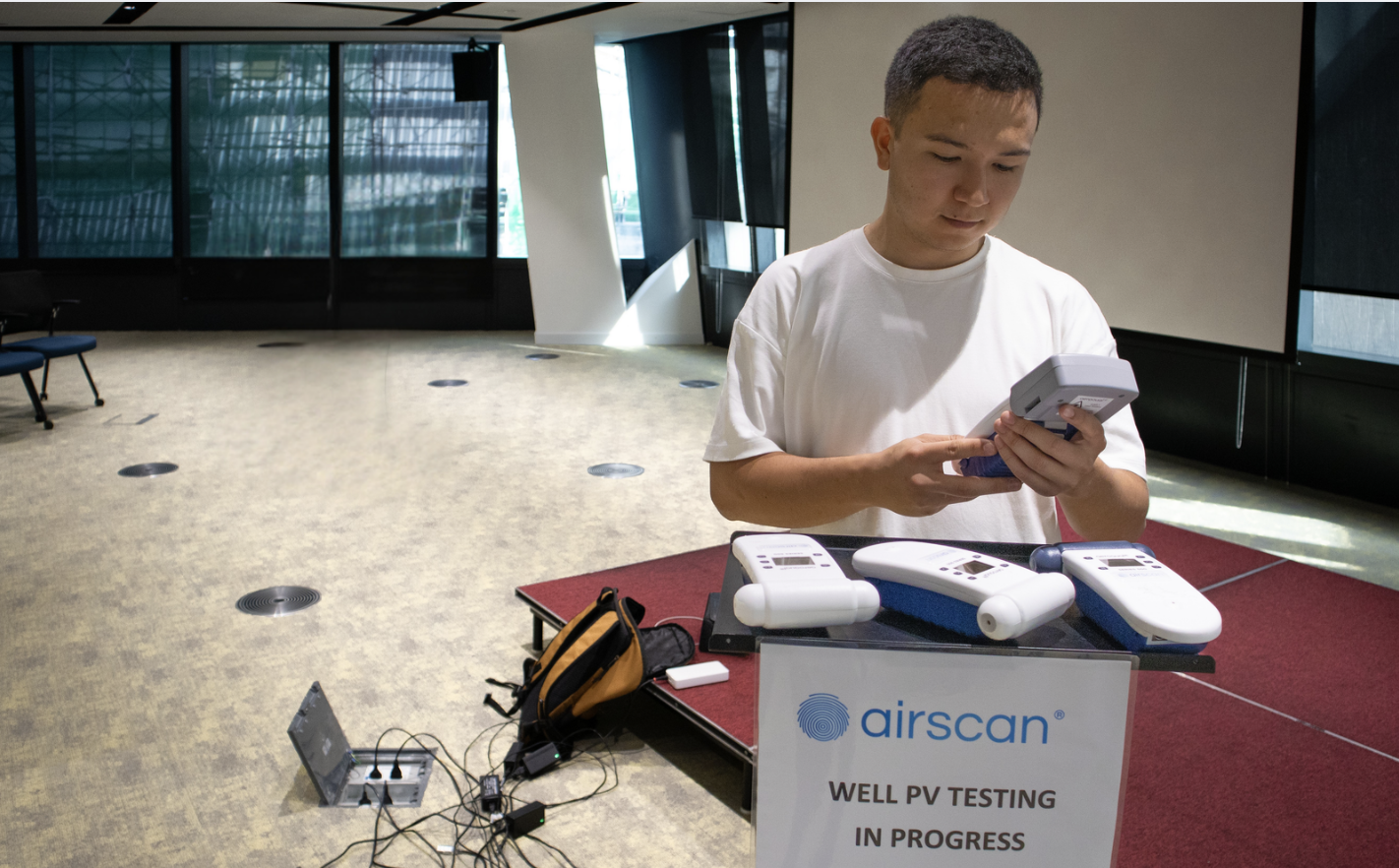 Airscan.org was verantwoordelijk voor Performance Testing, een cruciale fase binnen het WELL-proces waarbij ter plaatse wordt gemeten of een gebouw daadwerkelijk voldoet aan de strenge WELL-eisen. Tijdens een uitgebreide meetcampagne voerde het internationale team alle noodzakelijke testen uit, waaronder 9.600 individuele metingen voor luchtkwaliteit, 55 liter water bemonsterd en geanalyseerd voor waterkwaliteit, 500 temperatuurmetingen voor thermisch comfort, 150 meetpunten voor verlichting en 8 uur geluidsopnames voor akoestiek. Tijdens deze periode legde het vijfkoppige team 450.000 stappen af.